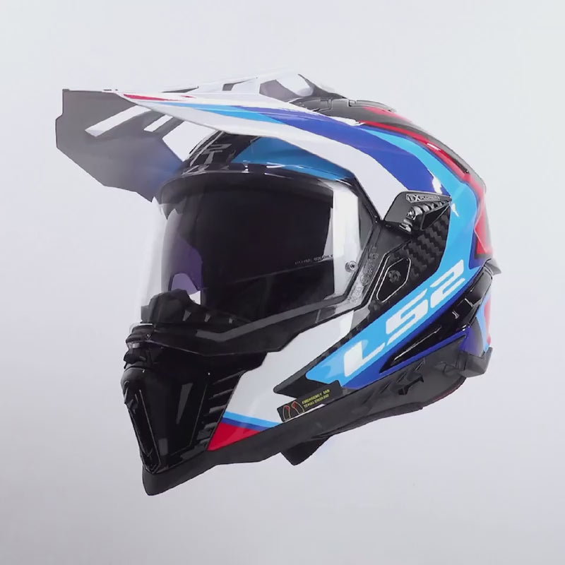 Přilba LS2 MX701 Explorer Carbon Frontier II Gloss bílá modrá